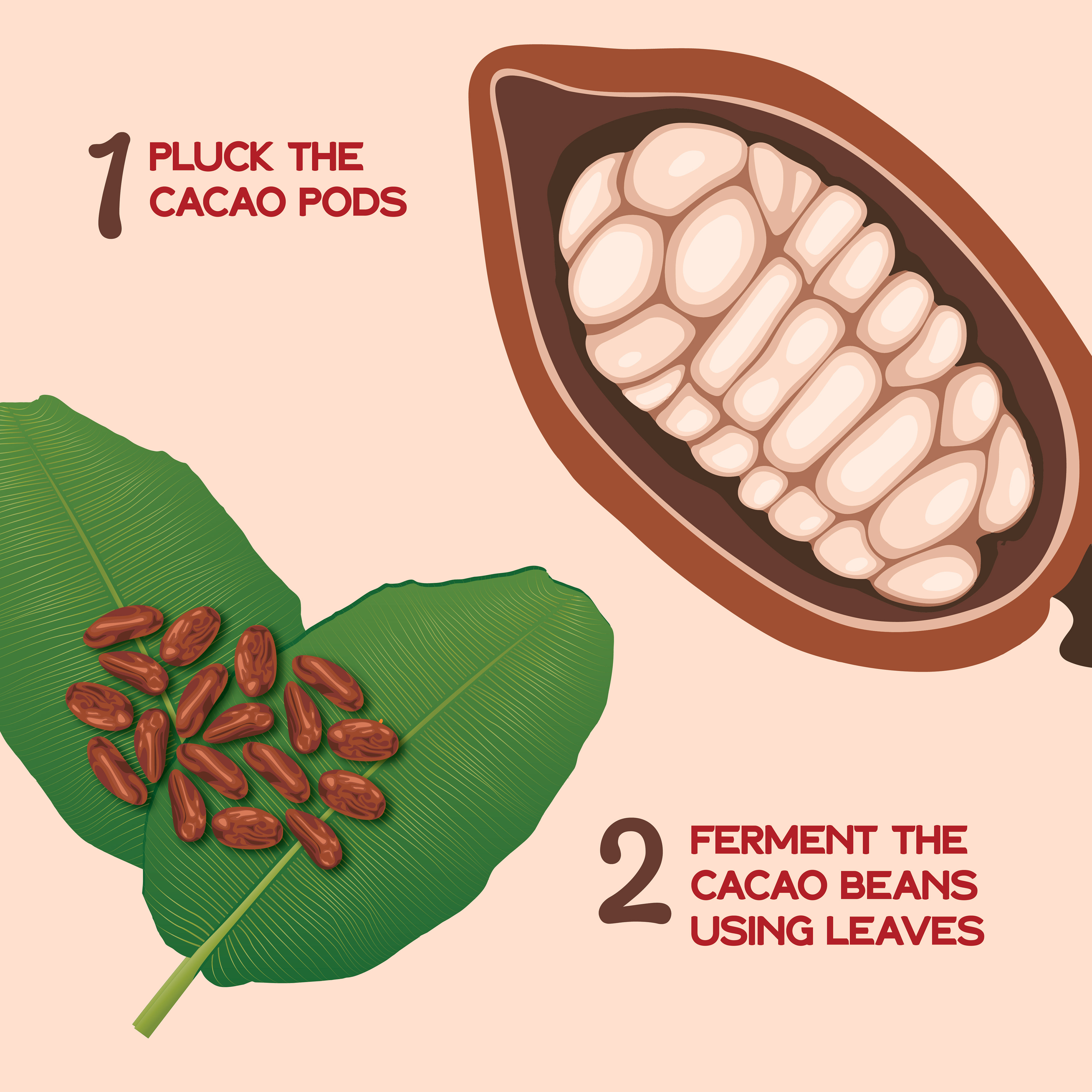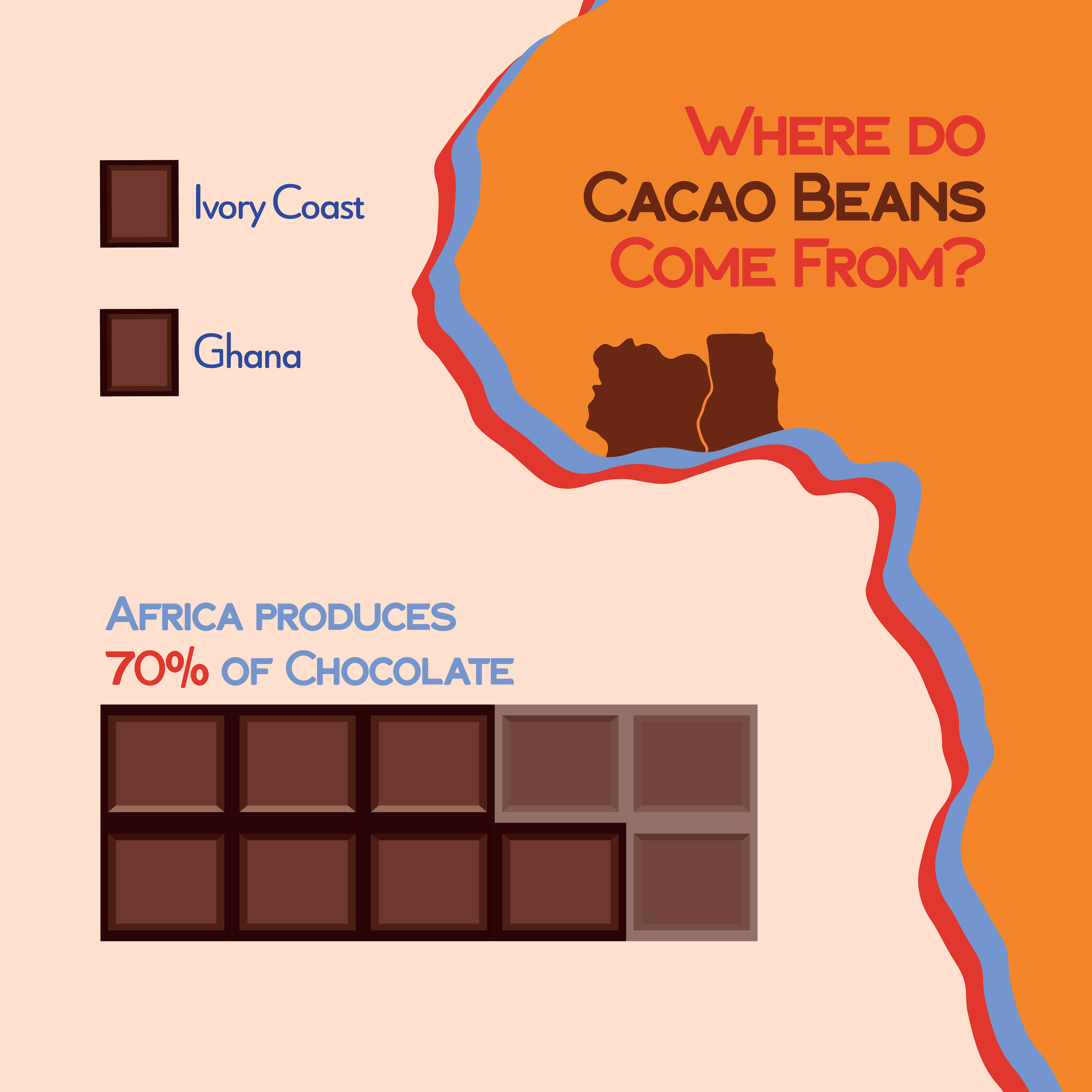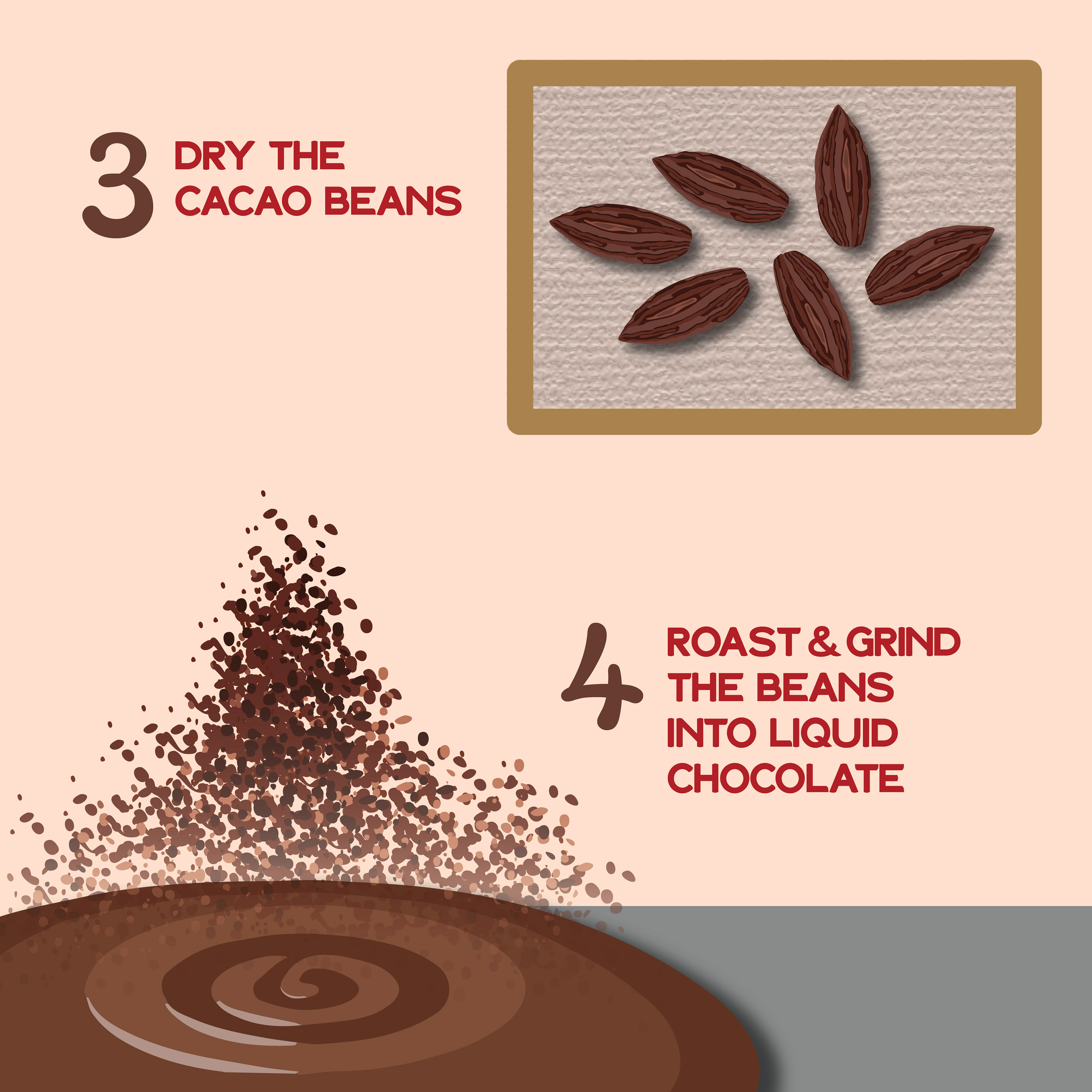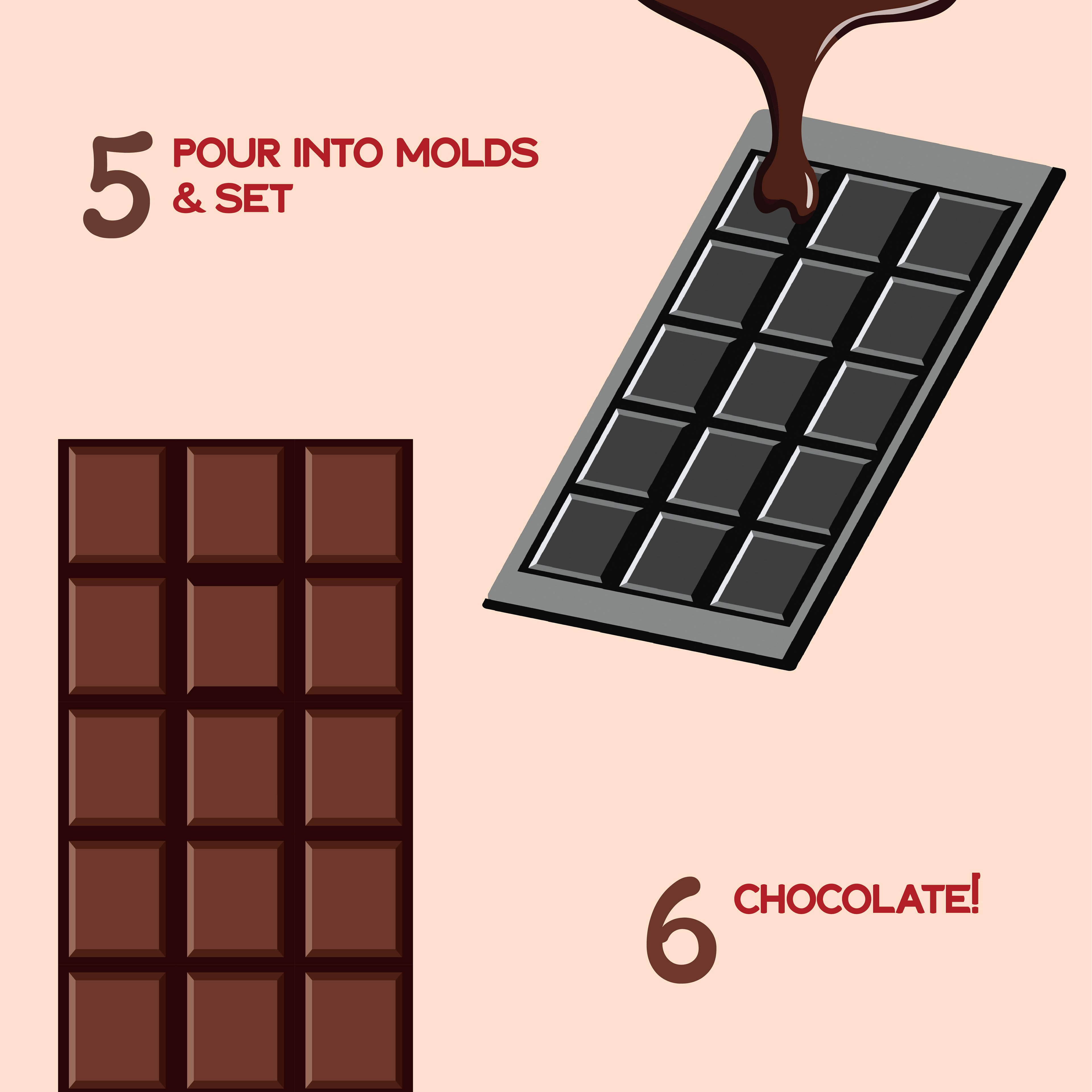 A social media carousel designed for my Introduction to Graphic Design course depicting the process behind creating a chocolate bar.